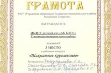 Шахмат уенын популярлаштыруга, тәрбияләнүчеләрнең шәхесен төрле яклап үстерү өчен шартлар тудыруга юнәлдерелгән "Шахмат патшалыгы" район конкурсына йомгак ясалды. Безнең "Күңелле шахмат" эше 3 нче урынга лаек булды!