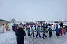 Работники детского сада совместно с родителями воспитанников приступили к лепке снежного городка.