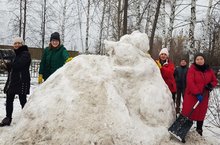 В саду начали активное оформление к празднованию Нового года. К строительству снежных фигур присоединились и активные родители.
