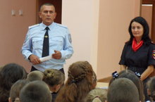 В рамках месячника безопасности на общешкольном родительском собрании выступил инспектор ГИБДД , психолог . Главная цитата собрания – « Семья является важнейшим институтом формирования личности ребенка вообще и личности безопасного типа в частности.»