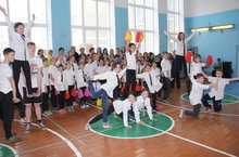Более пятидесяти участников группы учащихся 1-11 класса исполнили семиминутный зажигательный танец под аккомпанемент популярных зарубежных и отечественных хитов.