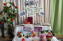 В детском саду оформлена выставка по история дошкольного учреждения, посвященный к 45-ти летию района. На ней представлены фотографии истории детского сада, фотоальбомы.