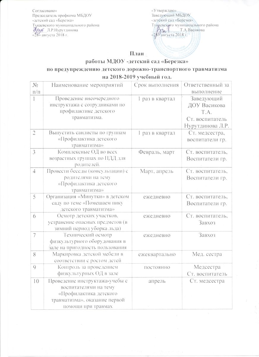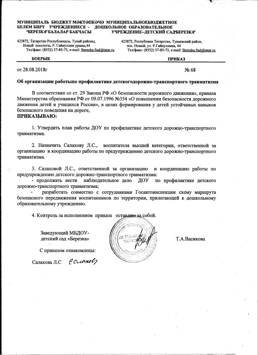 Приказ об организации работы по профилактике детского дорожно-транспортного травматизма