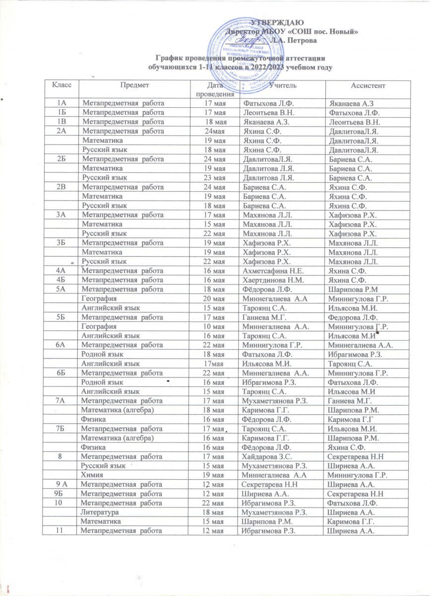 График проведения промежуточной аттестации обучающихся 1-11 классов в 2022/2023 учебном году