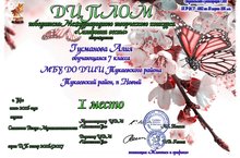 Гусманова Алия - 2 место , в номинации живопись, возрастная категория 12-15 лет, ученица художественного отделения п Новый, руководитель Саматова Резеда Мухаматхамисовна.