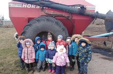 Осенние полевые работы закончились. В машинно-тракторном парке дети наблюдают и слушают о подготовке сельхозхозяйственной техники к зиме.