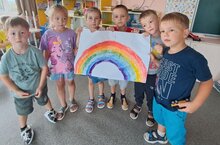 26 августа - День радуги. В старшей группе «Звездочки» воспитатель Ольга Юрьевна провела беседу : «Какой твой цвет любимый», «Что в природе меняет цвет и почему?»Дети провели эксперимент-смешивание цветов «Цветная вода».Читали художественную литературу по теме: С.Могилевская «Семь разноцветных сказок», «Разноцветные сказки», «Дружные краски». Так же. оформили коллективную композицию «Радуга-красавица».