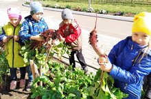 Воспитанники подготовительной группы «Бабочки» совместно с воспитателем Маннаново Э.Г сегодня вышли в огород, чтоб собрать урожай 2020 года.