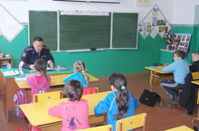 Бүген безнең мәктәптә башлангыч класс укучылары ГИБДД хезмәткәре белән очрашты.