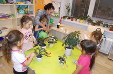 Ознакомление детей с природой в детском саду требует постоянного непосредственного общения с ней. Одним из условий, обеспечивающих это, является организация в детском саду уголков природы. Каждая возрастная группа детского сада "Солнышко" имеет свой уголок природы, за которым дети с удовольствием ухаживают.