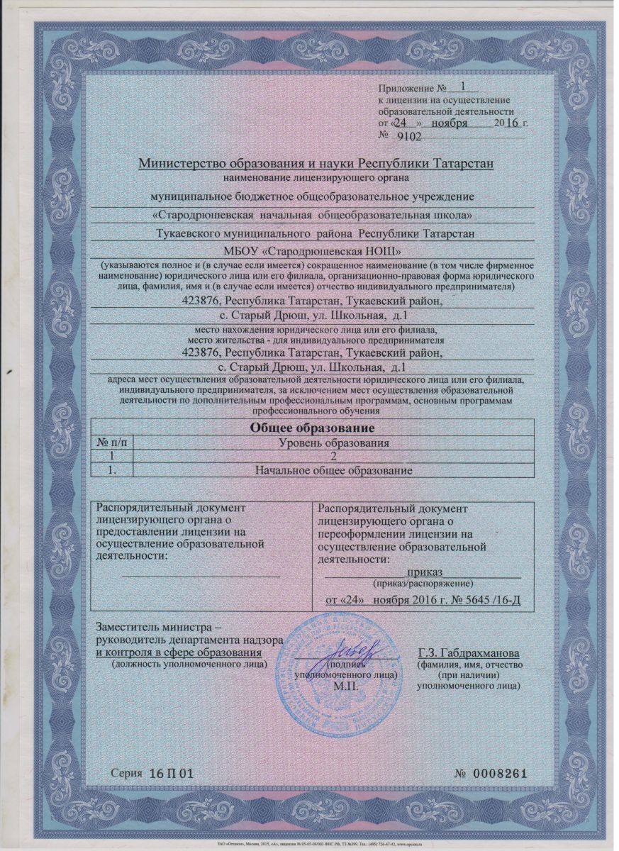 | Адрес: | 423876, Республика Татарстан, Тукаевский район, с. Старый Дрюш, ул. Школьная, д. 1 |