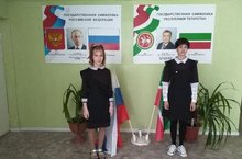 Торжественная линейка с поднятием двух государственных флагов с исполнением государственных гимнов. 25.04.2022