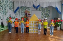 Дети разновозрастной группы "Ромашка" для участие в районном конкурсе "Парад профессий" разучили литературно-танцевальную композицию "Строители".