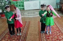 10.02.2021 г. В честь Года родных языков и народного единства вопитанники разновозрастной группы "Ромашка", разучили татарский народный танец "Парный"