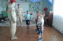 Юнармейцы тренируют подготовительную группу "Березка" к конкурсу строя и песни 06.04.2018
