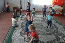 Дети и воспитатель первой младшей группы провели физкультурное развлечение "Мой весёлый, звонкий мяч"