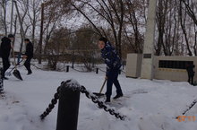 Сегодня после обильного снегопада трудовой десант очищает территорию памятника