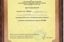 Воспитатель Ситдикова Гульчачак Раифовна заняла III место в муниципальном конкурсе "Лучшая дидактическая игра по ФЭМП" 01.11.2017