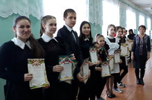 Еженедельная общешкольная линейка. Награждение победителей и призеров муниципального этапа Всероссийской олимпиады школьников. 22.02.2017