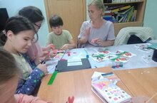 Идет подготовка к декаде пожилых людей. Ученики под руководством своих воспитателей изготавливают открытки для пожилых, отработавших в нашей школе.