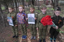 Дети нашего садика приняли участие на митинге и возложили цветы к памятнику погибших односельчан.