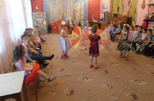 В старину после сбора урожая всегда праздновали приход осени и назывался этот период праздников"осенины". А у нас в садике проходят в это время осенние утренники. В старшей группе воспитательница Григорьевская И.Г. провела утренник "Праздник осени". К ним на праздник в гости приходила бабушка, которая вырастила большой уражай, и дети помогли ей его убрать. Чтобы легче было убирать дети эмоционально исполняли песни, рассказывали стихи о осени, танцевали танец с зонтиками, принимали активное участие в играх "Увези урожай", "Свари борщ" ит.д. Бабушка угостила детей грушами, выращенными в свое саду.