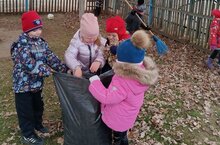 Дошколята и сотрудники приводили клумбы и территорию детского сада в порядок: убирали листья, собирали мусор, подметали дорожки.