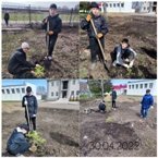 Активисты школы высадили саженцы елей на территории школы, в честь памяти погибших во время Великой Отечественной Войны.