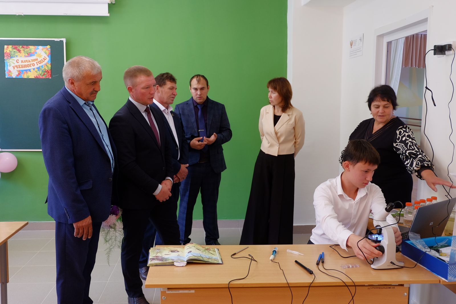 Центр состоит из двух кабинетов, каждый из которых оборудован под школьную деятельность. Кабинеты оборудованы современными приборами и инструментами для работы учащихся и педагогов. Для работы поступило следующее оборудование: цифровые лаборатории, ноутбуки, микроскопы, оборудование для проведения опытов, конструкторы для робототехники. Внедрять новое оборудование будут наши учителя: учитель химии, биологии Шаяхметова Л.Г.. и учитель физики Хуснутдинова А.А. Учащимися 8-9 классов были представлены лабораторные и практические работы по физике и химии, технологический блок «Робототехника» представили учащиеся 9 класса под руководством учителя физики Хуснутдиновой А.А..