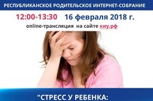 16 февраля состоится Республиканское родительское интернет - собрание на тему: «Стресс у ребенка: как распознать и чем помочь?». Трансляция будет вестись на сайте КИУ.РФ. Можно задать вопрос по адресу: roditelirt@mail.ru