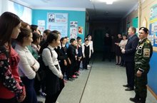 Бүген, Олы Мәтәскә урта мәктәбен тәмамлап, армия сафларында хезмәт итеп кайткан Мухаметшин Самат укучылар һәм укытучылар белән очрашты.
