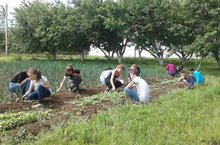 4 июля отдыхающиеся на пришкольном лагеря труда и отдыха начали день с зарядкой. Затем работали на пришкольном участке. Воспитатели провели беседу на тему “ Все работы хороши, выбирай на вкус”.