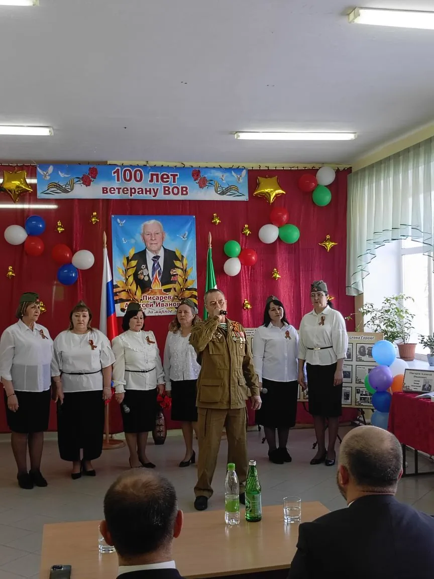 11 апреля в МБОУ-Большенырсинской СОШ Тюлячинского муниципального района Республики Татарстан проведено торжественное мероприятие, посвященного 100-летнему юбилею участника Великой Отечественной войны Писарева Алексея Ивановича.