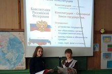 В МБОУ-Большенырсинская средняя общеобразовательная школа учитель истории Халилова Л.Р. провела урок с учащимися 9,10 классов, посвященный Дню Конституции РФ.