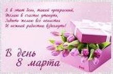 Милые женщины! Поздравляю вас с 8 Марта! Этот красивый праздник в начале весны приходит к нам, когда всё оживает, расцветает и распускается. Пусть в вашей жизни будет вечная весна, пусть ярко светит солнце, пусть поют птицы, пусть дни будут светлыми и безоблачными. Улыбок, хорошего настроения, радости, счастья!