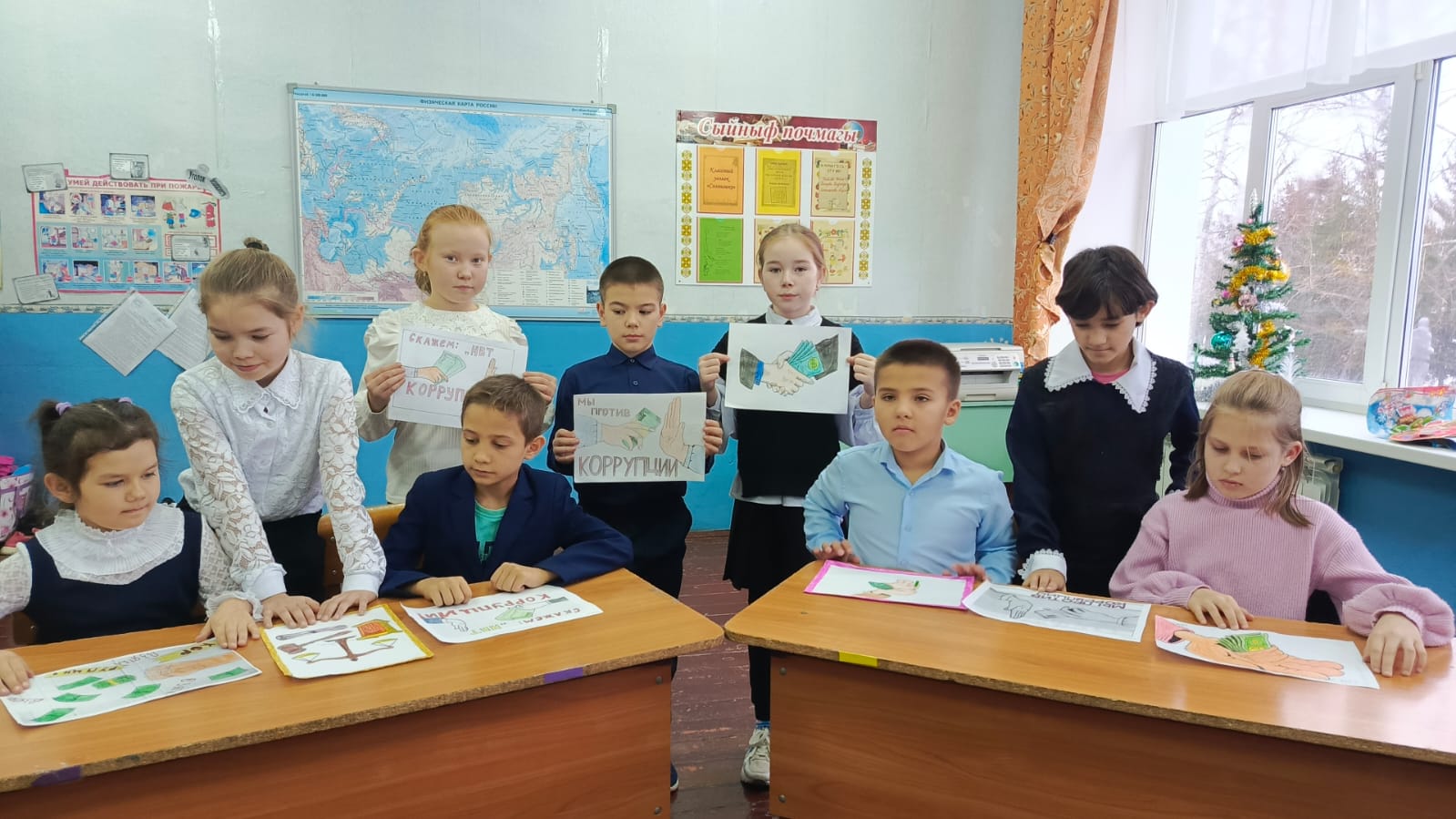 Целью проведения «Недели антикоррупционных инициатив» является формирование атмосферы неприятия в обществе коррупции в любых её формах, обеспечение открытости мер по противодействию коррупции, вовлечение гражданского населения в проведении антикоррупционной деятельности. 03 декабря учащиеся начальных классов МБОУ-Большенырсинской СОШ представили выставку рисунков на тему: «Мы против коррупции».
