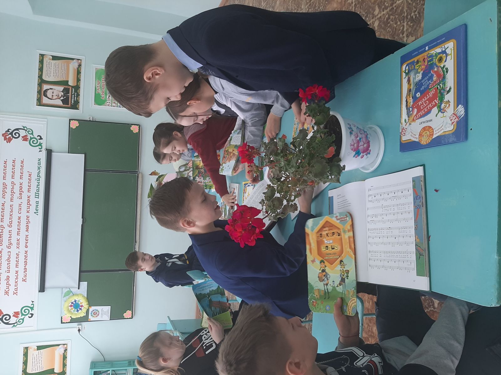 Дәрестә балалар кечкенә яшьтәге мәктәп балалары өчен нәшер ителгән яңа шигырь һәм әкият китаплары укыдылар.