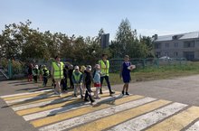В рамках профилактики детского дорожно-транспортного травматизма сотрудники Госавтоинспекции и педагоги с воспитанниками детского сада провели акцию «Пешеходный переход»