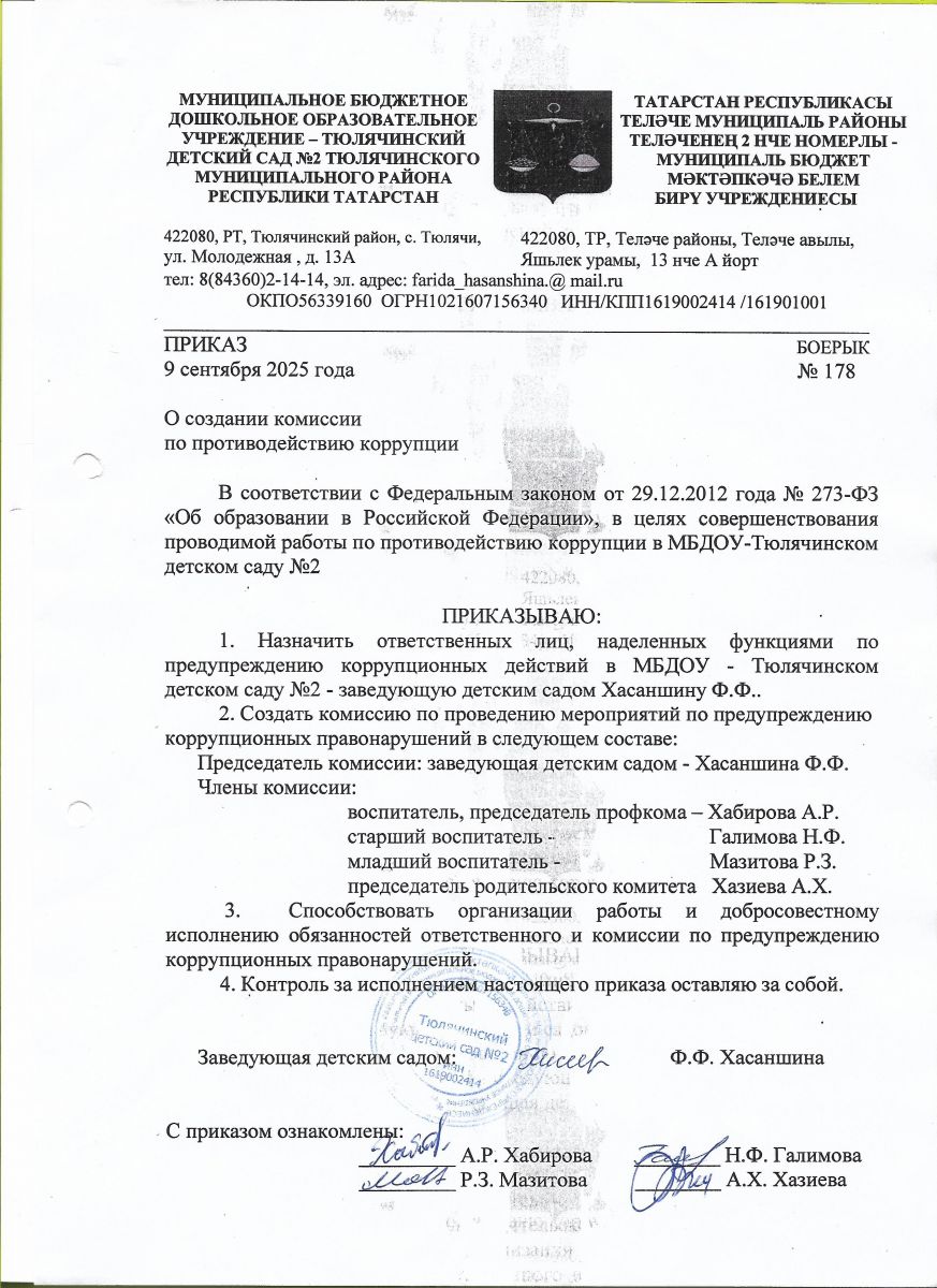 Положение об антикоррупционной комиссии МБДОУ-Тюлячинского детского сада №2
