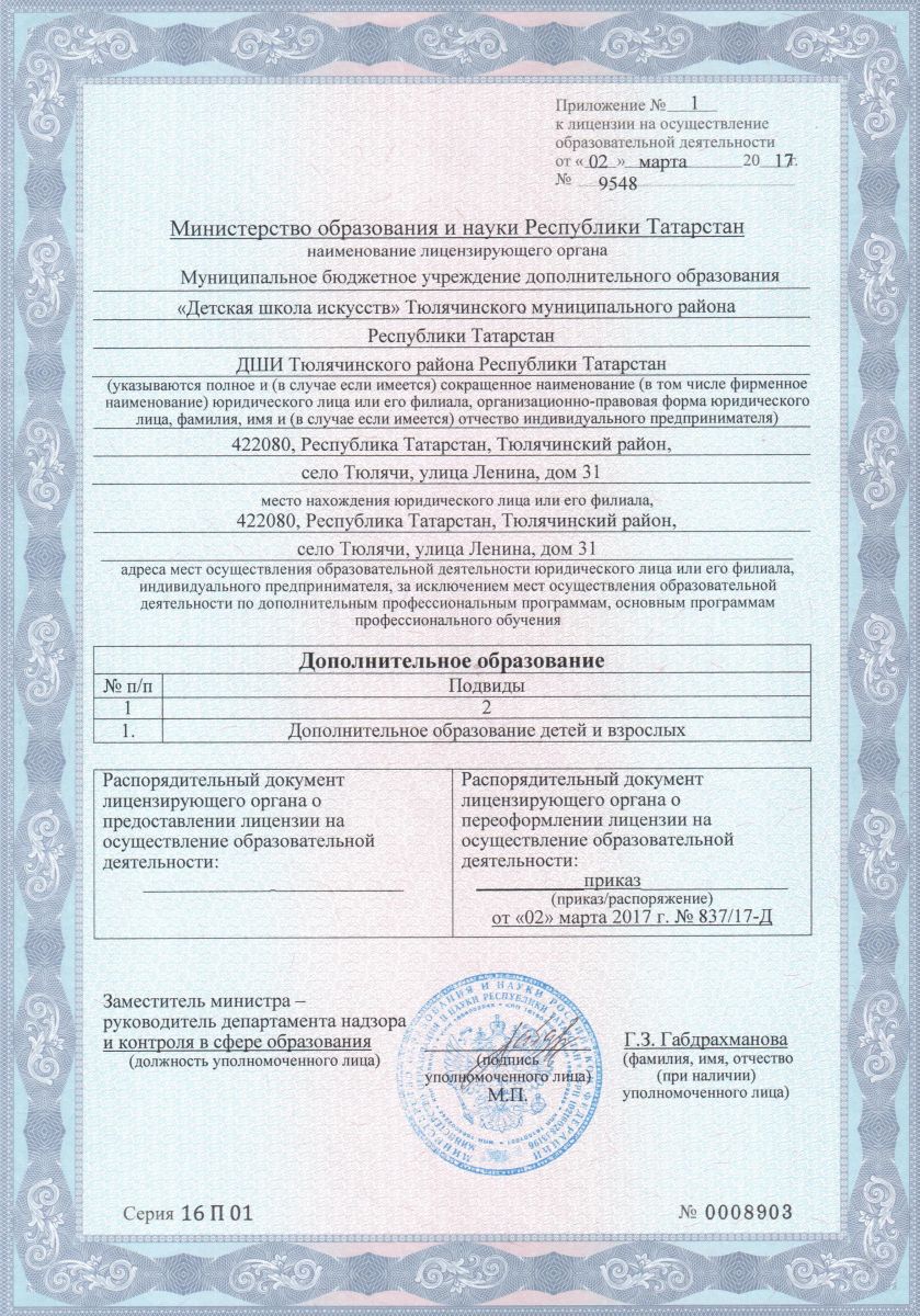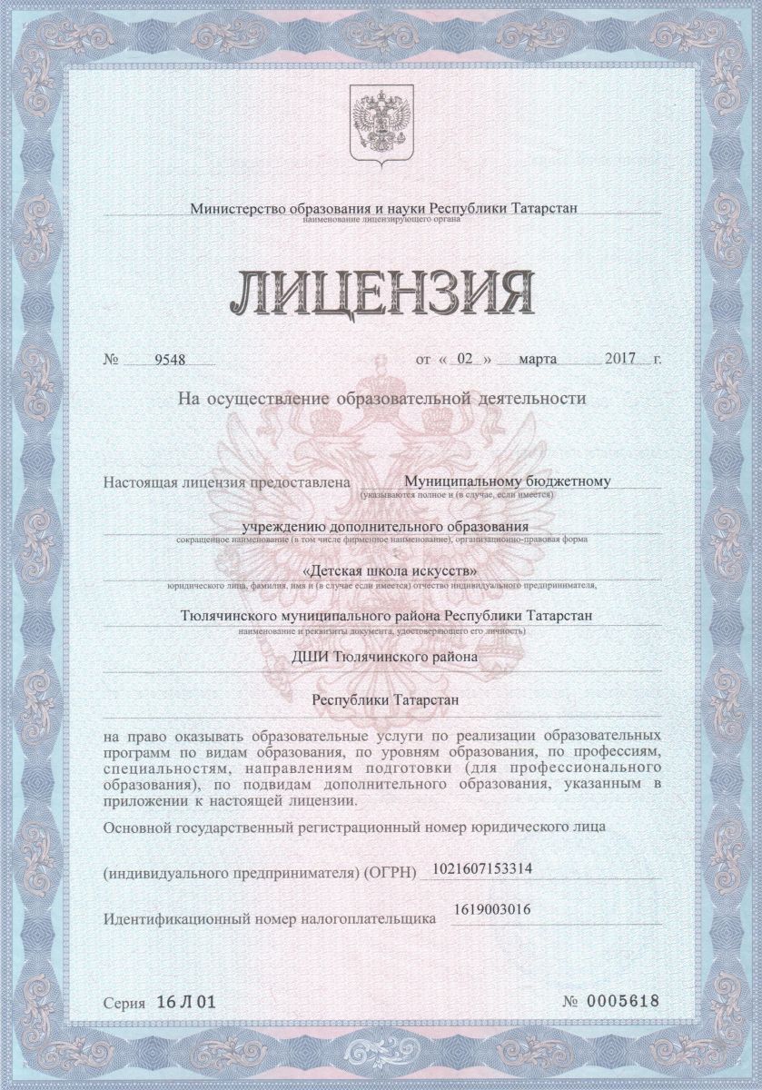 | Короткое название: | МБУ ДО ДШИ Тюлячинского района Республики Татарстан |