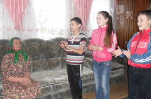 В рамках декады инвалидов педагог дополнительного образования Центра детского творчества Семёнова Елена Петровна с участниками фольклорного ансамбля «Сурэкэ» посетили инвалидов с детства Чернову Наталью Федоровну, Семенова Ивана Павловича и Егорова Ивана Ивановича.