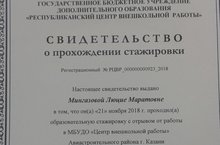 Балалар иҗат үзәге директоры Мәхмүтова З.Ш. 22-23 ноябрь көннәрендә Казан шәһәре Совет районыны “180 нче куп профильле полилингваль гимназиясе” гомуми белем муниципаль бюджет учреждениесе базасында муниципаль район һәм шәһәр округларының белем бирү оешмалары җитәкчеләре, аларның урынбасарлары, коррупциягә каршы җаваплы кешеләр өчен оештырылган “Коррупция: сәбәпләр, күенешләр, каршылыклар” темасына укуларда катнаша.