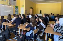 15 гыйнвар көнне мәктәптә һөнәри юнәлеш бирү эше кысаларында КФУ студентлары белән очрашу узды. // 15 января в рамках профориентационной работы в школе прошла встреча со студентами КФУ.