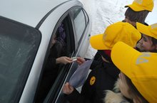 ЮИД отряды укучылары "рейд"ка чыкты. Алар машина йөртүчеләргә, балалар бакчасына йөрүчеләргә һәм җәяүлеләргә яктырлык кайтаручы элементлар турында сөйләделәр.