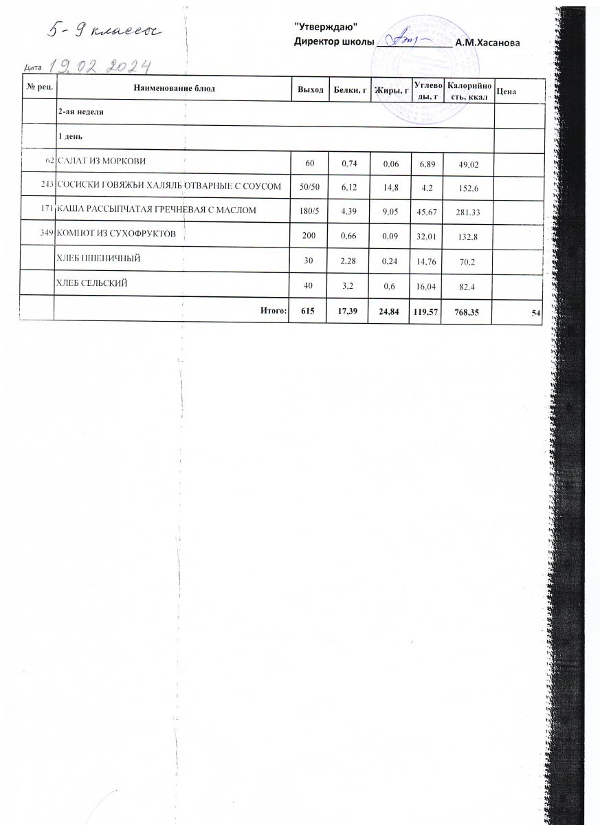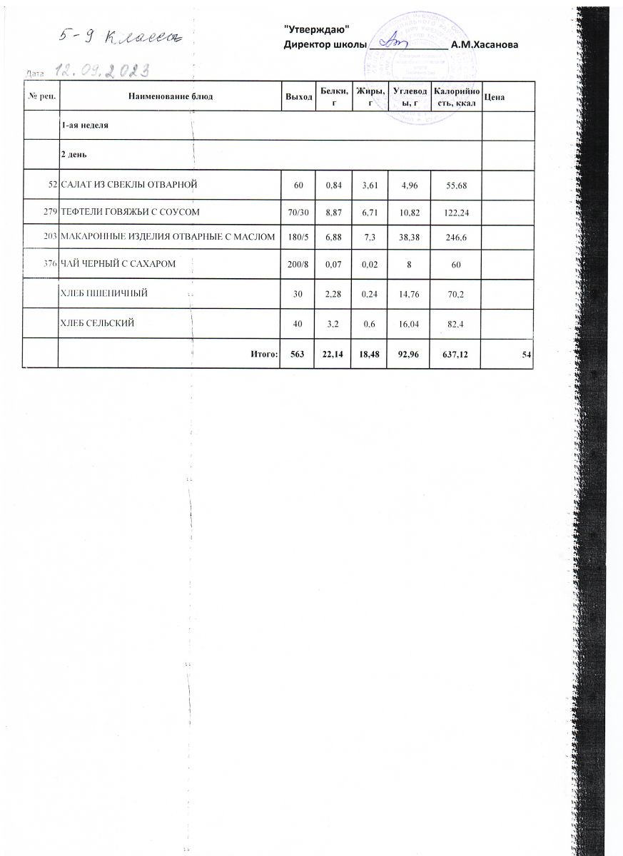 Меню на 01.09.2023 5-9 классы Меню на 02.09.2023 5-9 классы