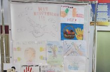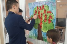 В рамках акции «Стоп-Вич» ученики кружка «SMS-дети» 2 «г» класса вместе с классным руководителем провели просветительскую акцию. Они рассказали ученикам про эту болезнь, задавали вопросы, на которые ученики ответили и прикрепили красную ленточку «Дереву жизни». Далее они написали свои пожелания и ответы на вопрос «Что нужно сделать, чтобы вести здоровый образ жизни?».