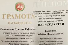 Республиканские олимпиады продолжаются. Ученица 11 класса Тюлячинской средней школы Зубайда Фаляхиева стала призером заключительного этапа республиканской олимпиады по родному языку для учащихся школ с русским языком обучения. К Олимпиаде школьника подготовила учитель татарского языка и литературы Сальманова Гузалия Рафиковна. Поздравляем!