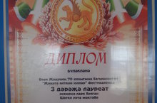 Бөек Җиңүнең 70 еллыгына багышланган "Җиңүгә илткән юллар" фестивалендә Шәтке урта мәктәбе 3 дәрәҗә лауреат исеменә лаек булды.