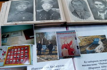 Ученики посечающие кружок "Алтын куллар" сделали макет к 70 летию "Великой победы".