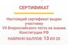 12 декабрьда «VII РФ Конституциясе буенча белемнэр акциясе»ндэ катнаштык. Акциядә россиялеләрнең хокукый грамоталылыгы дәрәҗәсен бәяләү, шулай ук җәмгыятьне Россия Федерациясенең Гражданлык төзелешен өйрәнүгә һәм конституциячел бурычларны үтәүгә мотивацияләү максатыннан үткәрелде. Анда 7-8 сыйныф укучылары үзләренең, Конституцияне ни дәрәҗәдә белүләрен бәяләгән сертификатлар алдылар.